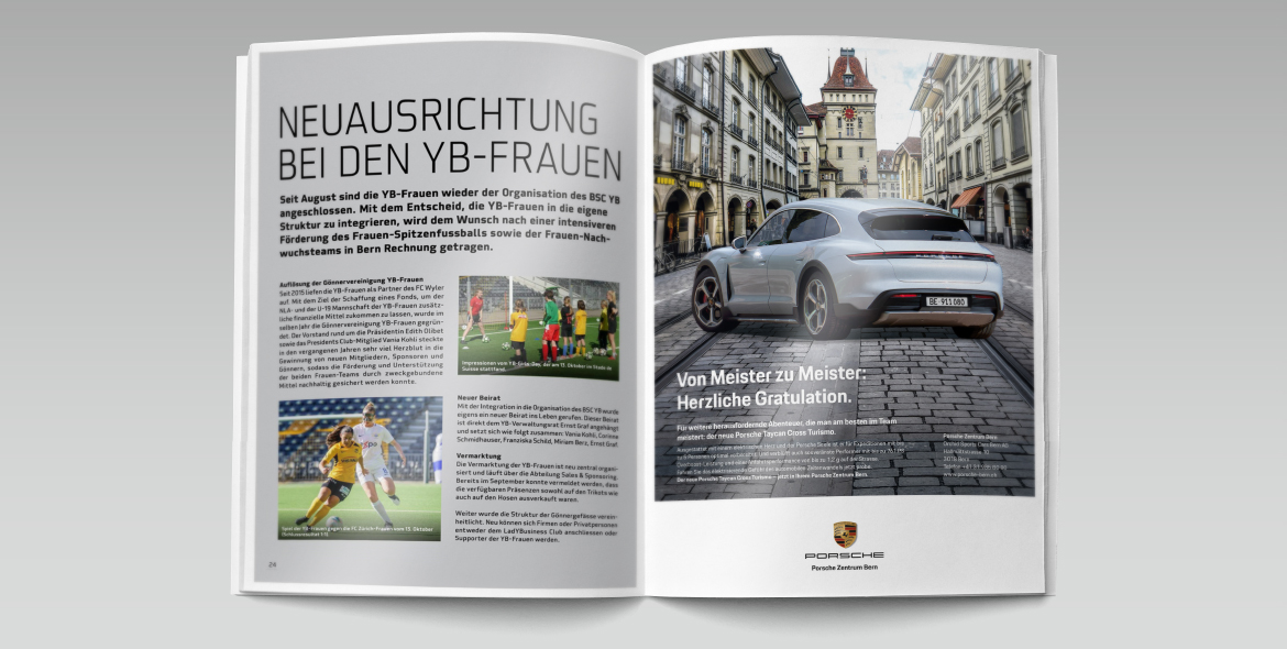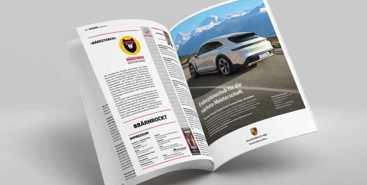 Deshalb durften wir für Porsche bereits diverse Anzeigen und Plakate mit Bezug zu den Young Boys und dem SC Bern erstellen. In sportlich guten, wie in schlechten Zeiten. Wobei uns als Baslern – zumindest was den Fussball anbelangt – die schlechten Zeiten ja doch ein bisschen lieber waren.