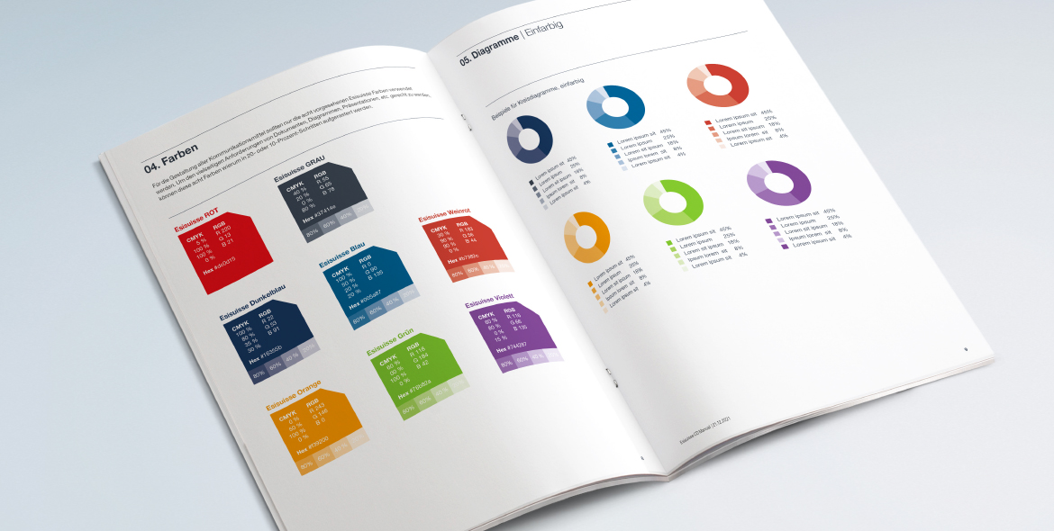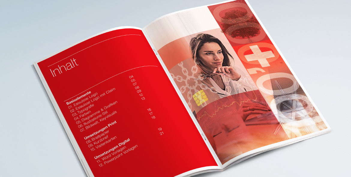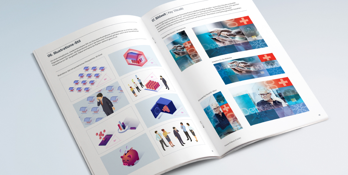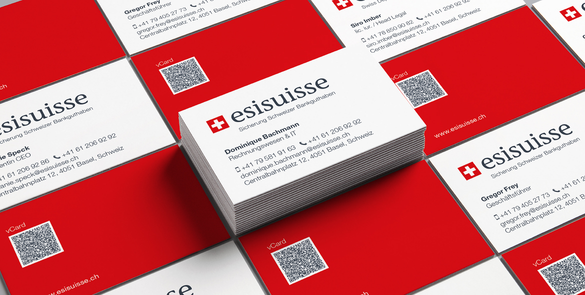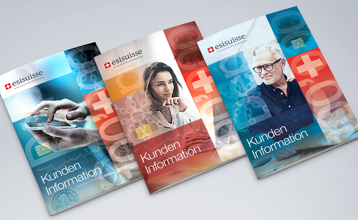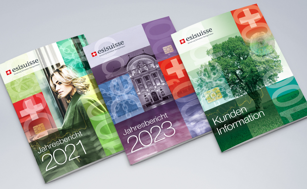 Um die Aufgaben der Esisuisse jedoch auch für ein breites Publikum transparenter zu machen, realisierte Fünfstern 2021 ein Redesign, welches beim Logo beginnend auch den Claim (alt: Einlagensicherung) etwas verständlicher machte. Weiters beinhaltet das von Fünfstern realisierte Erscheinungsbild eine eigenständige Bildwelt, Defintion der farblichen und typografischen Hirachien, Stilvorgaben für Infografiken sowie die Überarbeitung sämtlicher in- und externen Office-Dokumente, welche im Ernstfall schnell modifizier- und verfügbar sein müssen.