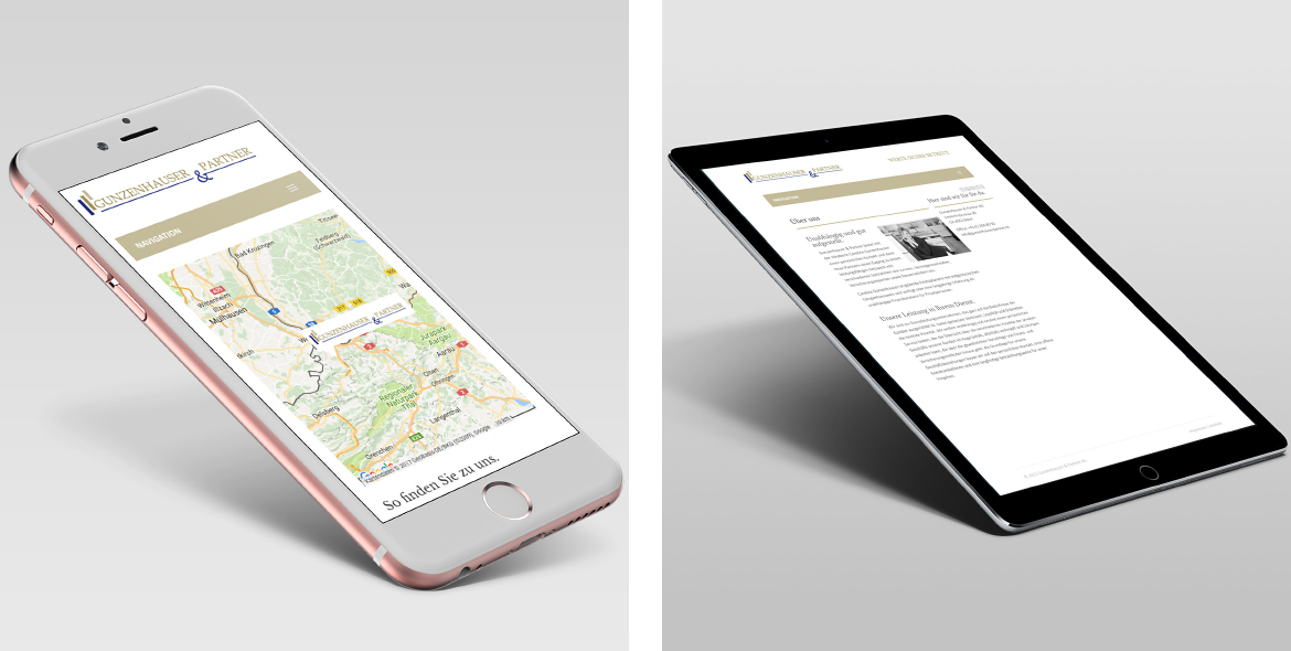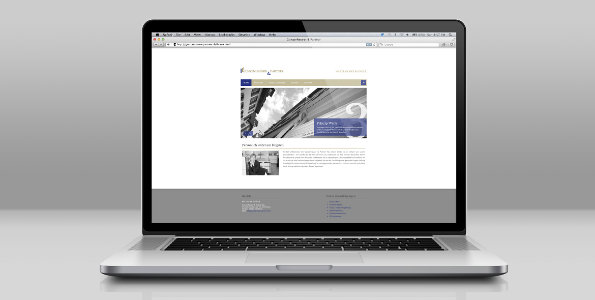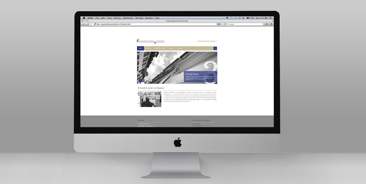 Ein klarer und sympathischer Webauftritt unterstreicht die persönliche, diskrete und vertrauenswürdige Betreuung, die man als Kunde bei Gunzenhauser & Partner AG geniessen darf.