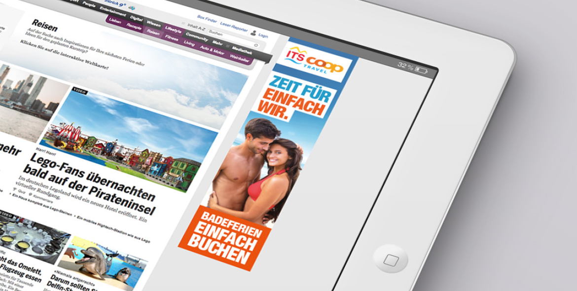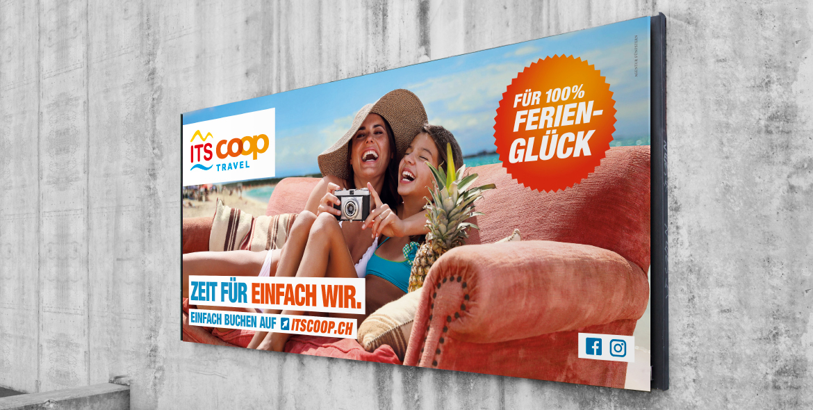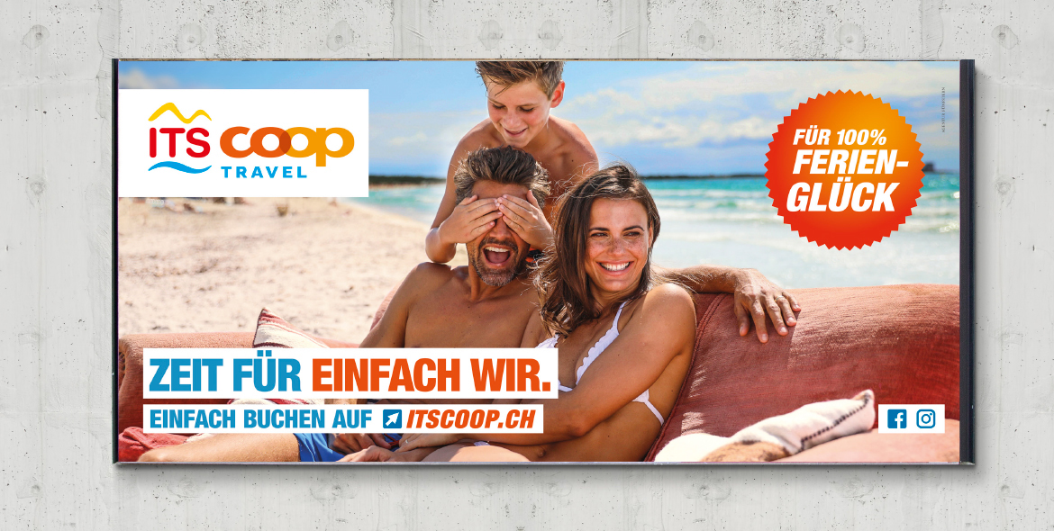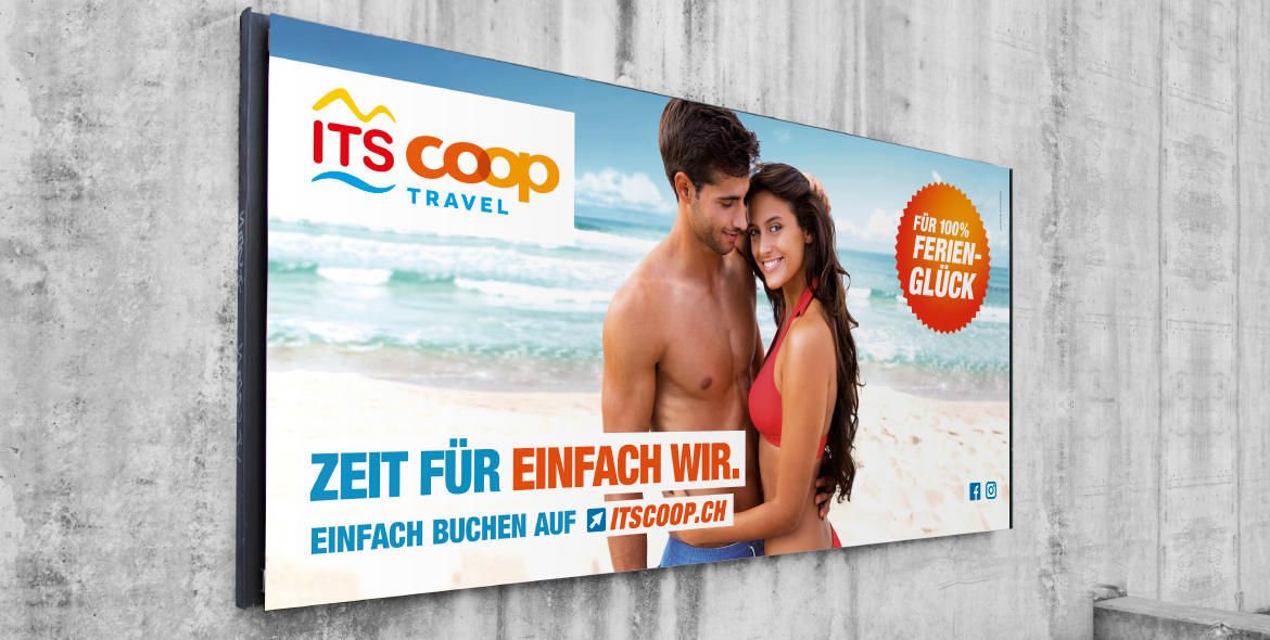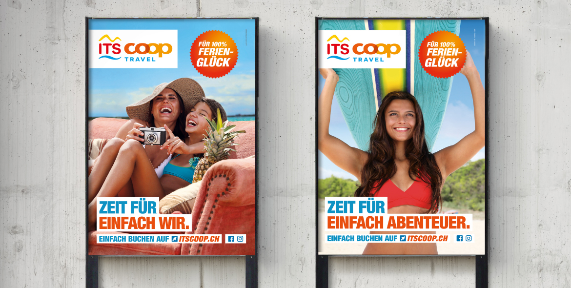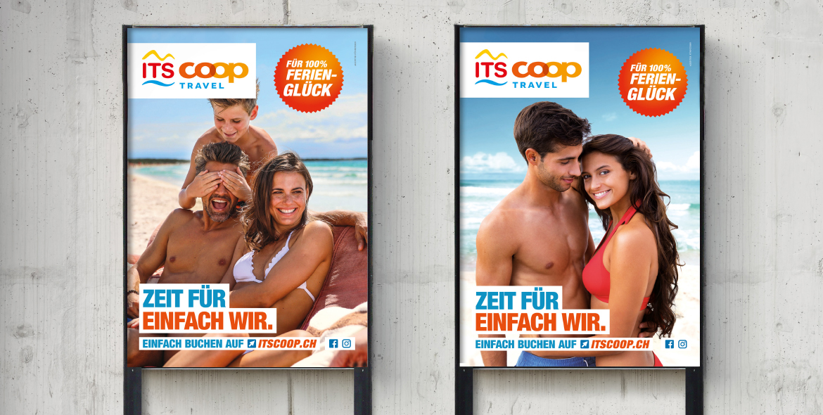 Der Name ITS Coop Travel steht schweizweit für verlässliche Leistungen und reibungslosen Feriengenuss zu fairen Preisen. Gewohnheitsmässig bucht der reiselustige schweizer Feriengast seine Sommerferien bereits im kalten Januar. Grund für uns, die neue Kampagne bereits Ende 2017 als Plakate, Animationen auf Strassen-LED-Screens, auf öffentlichen Verkehrsmitteln und Online Bannern zu lancieren. Mit eigenem Bildmaterial aus dem äusserst ergiebigen Fotoshooting haben wir neu den Begriff «qualitative Zeit» eingeführt. Qualitätszeit für mich, für Dich, für uns – vor allem in der wichtigsten Zeit des Jahres. Durch die Plakatkampagne wurde eine Steigerung der organischen Suche von 37% und des Direct Traffics von über 50% erzielt.