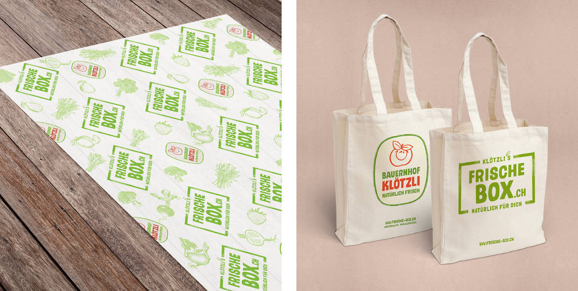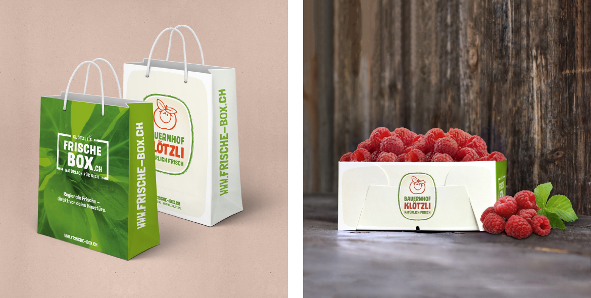 Auf der authentischen Positionierung des Kunden aufbauend konnten verschiedensten Elemente nachhaltig und umweltschonend umgesetzt werden: Von der Gemüse-, Obst- und Früchtekiste über Papier- und Kompostsäcke, Verpackungs- und Einlagepapiere, Produkteetiketten, T-Shirts, Flyers, POS-Materialien, und Früchteschalen in verschiedenen Grössen. Ohne der Nutzung von umweltschädigenden Stoffen.