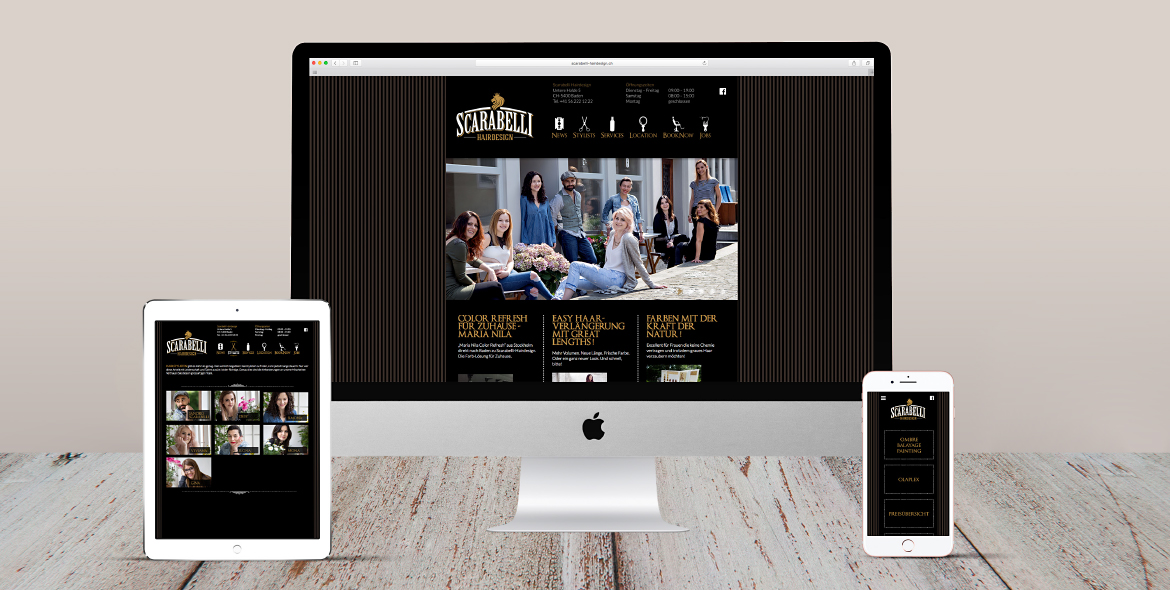 Durchgestylt und trotzdem funktional, wie z.B. mit dem praktischen Online-Buchungstool, vermittelt die Website von Scarabelli Hairdesign das persönliche Flair des Unternehmens – sowie des Unternehmers. Die entwickelten Icons verleihen der Website zudem einen edlen und aufgeräumten Touch. Beim Entwickeln und Programmieren – vom Ansatz bis zur Spitze bei Fünfstern – wurde bei der Website Scarabelli Hairdesign von Anfang an auf eine hohe Nutzerfreundlichkeit und eine optimale Auslegung von Suchmaschinen-relevanten Inhalten geachtet.